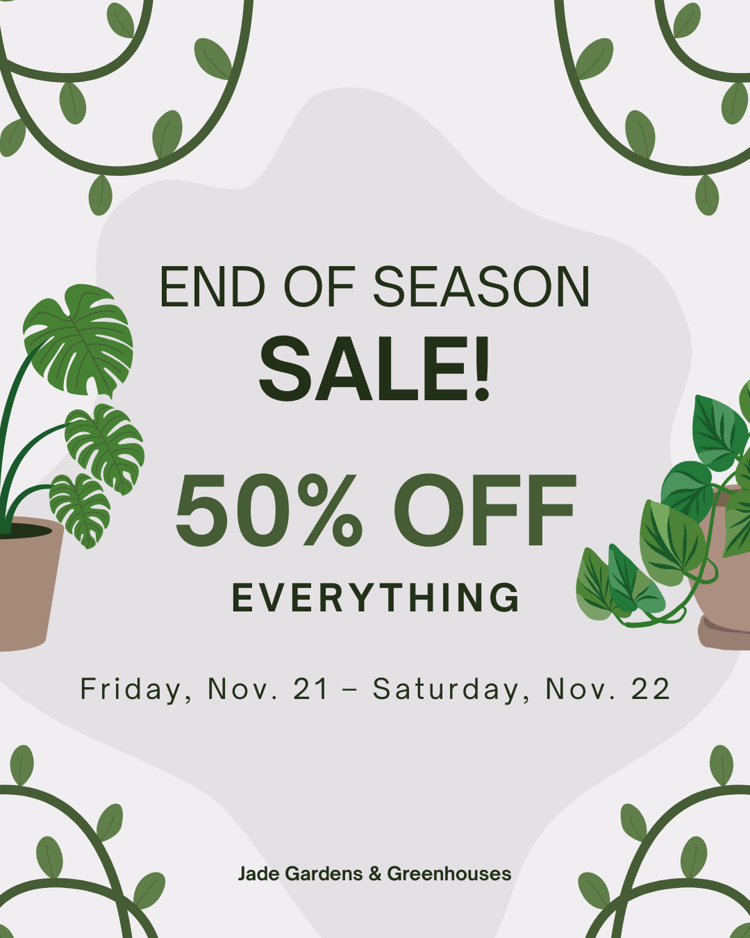 Good news Jade shoppers, our full red, full white, and red & white mixed flowering plants will be 50% OFF from now until Canada Day! This includes our flowering annuals, flowering tropicals, roses, peonies, and flowering perennials!